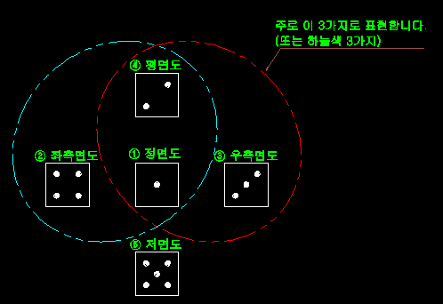 따라서 도면보는 방법의 기본을 설명하기에 가장좋은것이 주사위라고 생각됩니다.