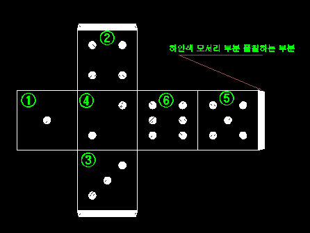 이해를 돕기위해 위와 같은 전개도를 이용하여 주사위를 만들어 보겠습니다.