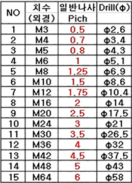 | 미터 일반 / 가는 나사 헬리코일 규격 탭 드릴 규격 정리. (0) | 2021.12.17 |